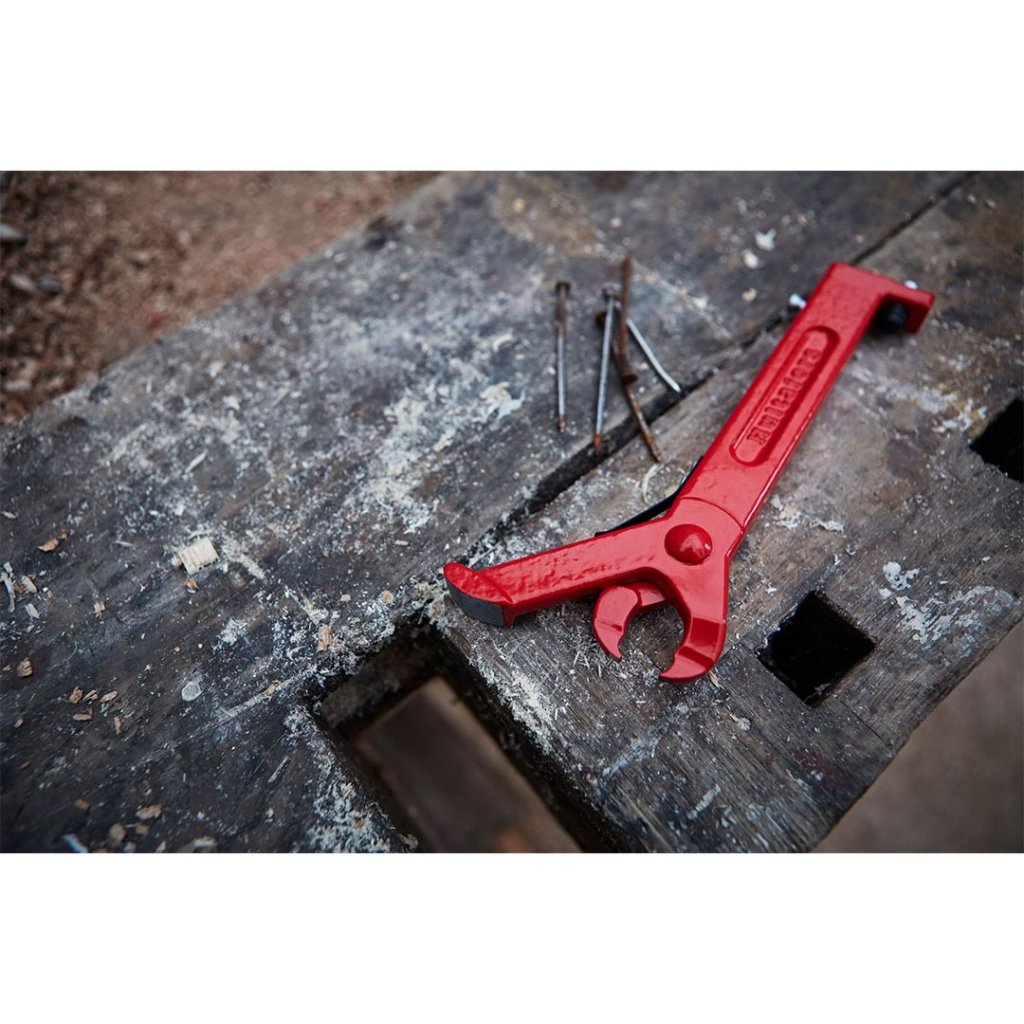 Díky promyšlené konstrukci se ATLE skvěle používá v kombinaci s tesařským kladivem. Stačí nasadit dráp na hřebík a s minimální námahou jej vytáhnete – ušetříte tak čas a vyhnete se zbytečným komplikacím. Odolné provedení z červeně lakované oceli zajišťuje dlouhou životnost, takže na tento nástroj se můžete spolehnout při každém projektu.