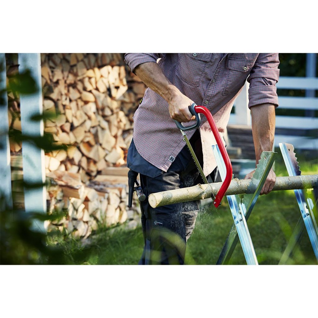 Model BSL-12 je vybaven ergonomickou rukojetí s ochranou kloubů, která zajišťuje bezpečný a pohodlný úchop za všech podmínek. Masivní ocelový rám s antikorozní povrchovou úpravou zaručuje dlouhou životnost, zatímco jeho unikátní trojúhelníkový tvar usnadňuje práci ve stísněných místech. O vynikající řezný výkon se stará pilový list z prémiové oceli C75 s kalenými zuby, optimalizovaný pro efektivní řezání suchého i čerstvého dřeva.
