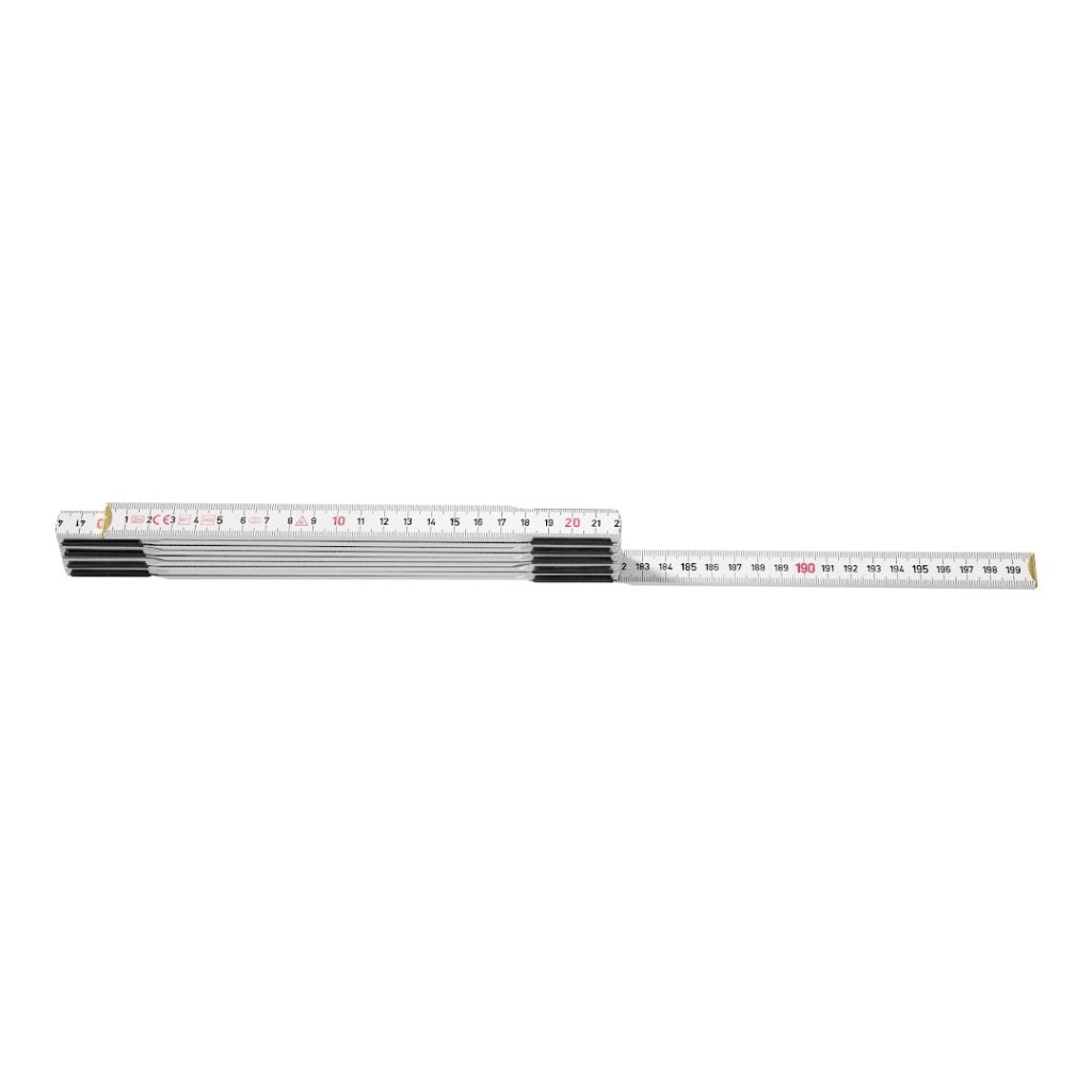 Pro maximální efektivitu je metr opatřen přehlednou černou metrickou stupnicí na obou stranách, doplněnou o výrazné červené značení decimetrů pro rychlou a bezchybnou orientaci. Povrch je chráněn speciálním lakem na vodní bázi, který účinně odpuzuje nečistoty a vlhkost. Díky tomu si metr zachovává svou čitelnost a funkčnost i v nepříznivém prostředí.
