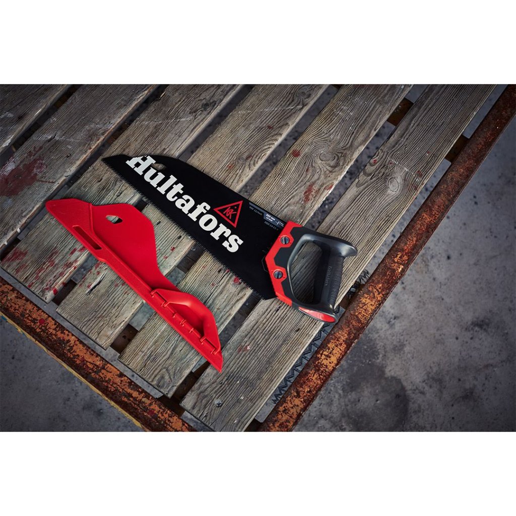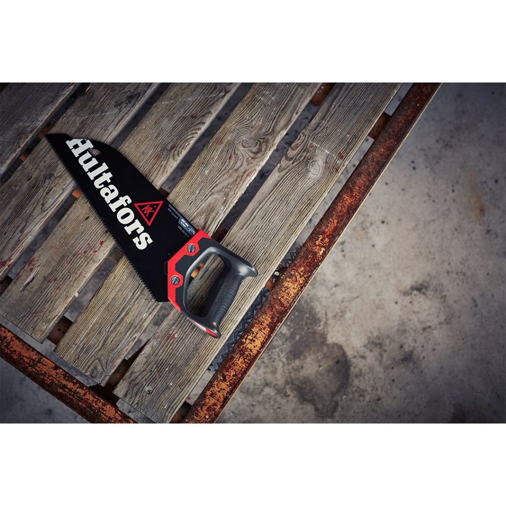 Srdcem pily je 350mm čepel z prvotřídní oceli C75 o tloušťce 1 mm, která zajišťuje mimořádnou stabilitu a dlouhou životnost. Díky unikátnímu třífázovému broušení zubů dosáhnete výjimečně ostrých a čistých řezů bez otřepů. Speciálně navržená oblouková špička navíc umožňuje snadno zahájit řez i uprostřed materiálu. Práce s pilou je pohodlná i při delším používání díky ergonomické rukojeti s pogumovaným úchopem, která poskytuje maximální kontrolu a minimalizuje únavu ruky.