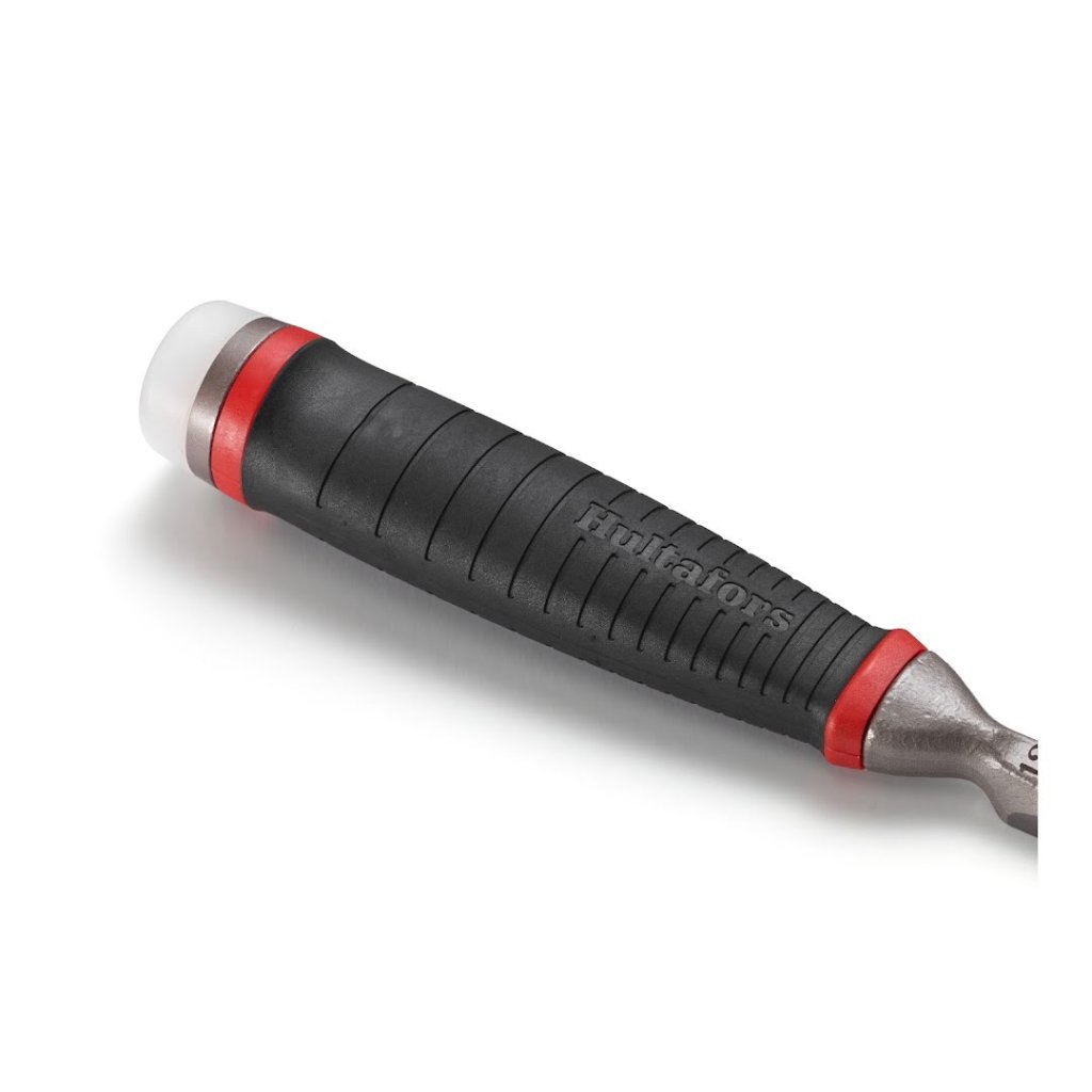 Čepel dláta je broušena pod úhlem 25°, což představuje ideální kompromis mezi vynikající ostrostí a vysokou odolností ostří. Dokonale rovná spodní strana čepele umožňuje přesné vedení nástroje po povrchu materiálu, což je klíčové pro čisté a rovnoběžné řezy. Ergonomicky tvarovaná rukojeť ze Santoprenu poskytuje bezpečný a pohodlný úchop, snižuje únavu při delší práci a vyměnitelný nylonový úderník efektivně prodlužuje celkovou životnost nástroje.