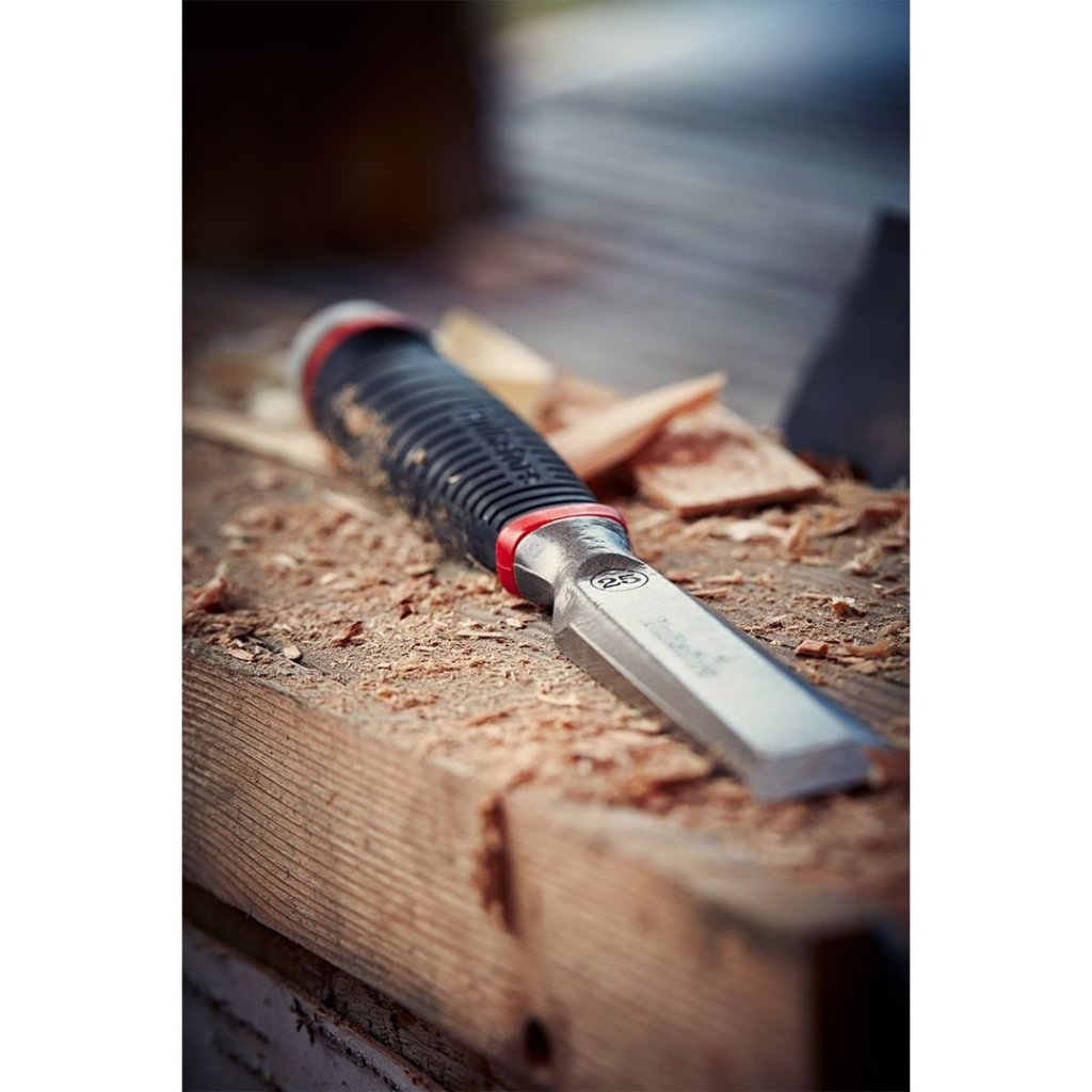 Dláto je vykováno z jednoho kusu oceli s pevným I-profilem, což zajišťuje maximální přenos síly přímo do materiálu a poskytuje vynikající páku i odolnost vůči zlomení. Díky ploché spodní straně můžete řezat dokonale rovnoběžně s povrchy, ať už děláte detailní tesařskou práci nebo potřebujete čisté a přesné zarovnání. Řezná hrana se sklonem 25° nabízí ideální poměr mezi ostrostí a odolností, takže dláto zůstává spolehlivě ostré i při intenzivním používání.