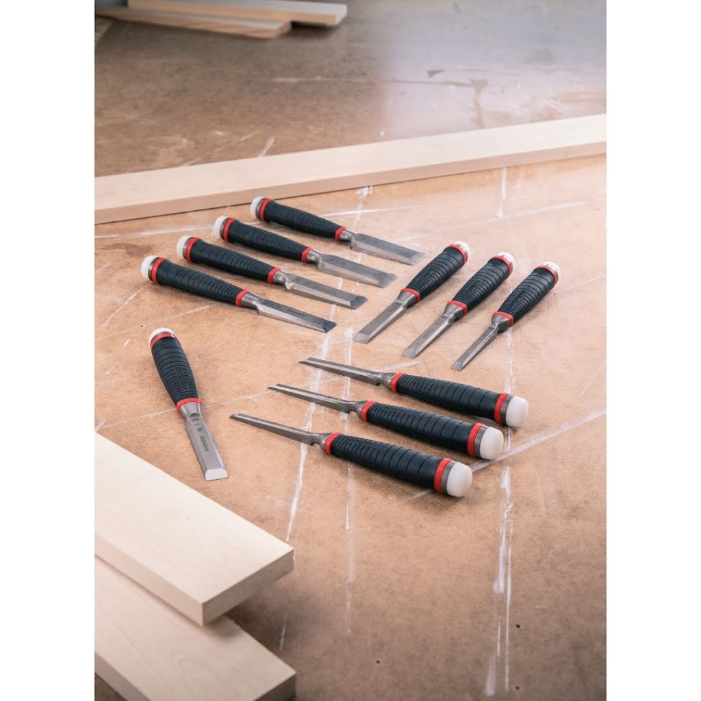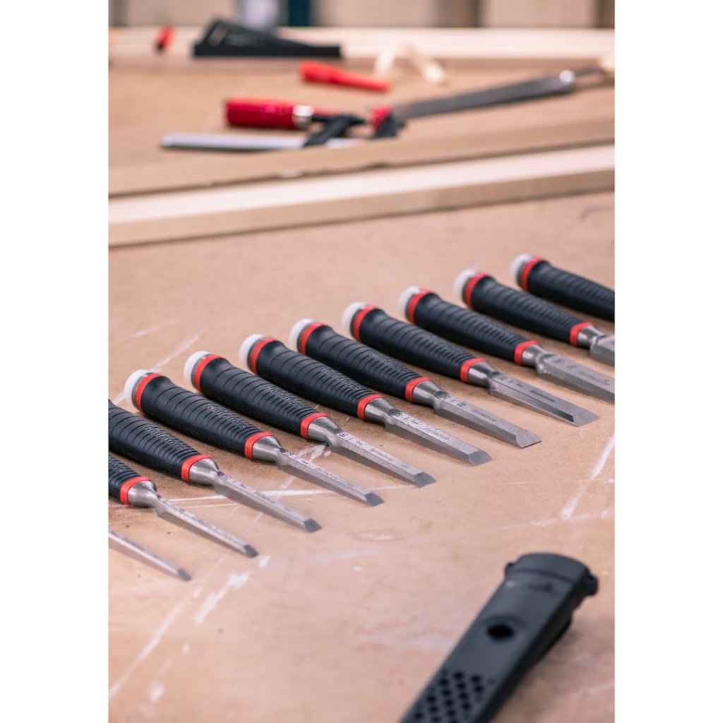 Řezná hrana se sklonem 25° představuje optimální kompromis mezi ostrostí a trvanlivostí ostří, díky čemuž je dláto ideální pro hrubé i jemné práce. Dokonale rovná spodní strana umožňuje vést přesné řezy těsně podél povrchu, což zvyšuje jeho univerzálnost při nejrůznějších truhlářských a stavebních aplikacích. Rukojeť je zakončena odolným nylonovým úderovým krytem, který snese i silné údery kladivem a v případě opotřebení jej lze snadno vyměnit, čímž se prodlužuje životnost celého nástroje.