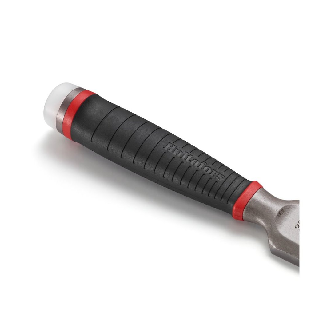 Promyšlený design tohoto dláta zvyšuje efektivitu a přesnost vaší práce. Ergonomická rukojeť ze Santoprenu poskytuje bezpečný a pohodlný úchop, zatímco plochá spodní strana čepele umožňuje precizní práci a snadné vytváření rovnoběžných řezů. Řezná hrana s úhlem 25° nabízí optimální rovnováhu mezi ostrostí a životností. Nástroj je navíc vybaven odolným a vyměnitelným nylonovým úderníkem, který chrání rukojeť a prodlužuje celkovou životnost dláta.