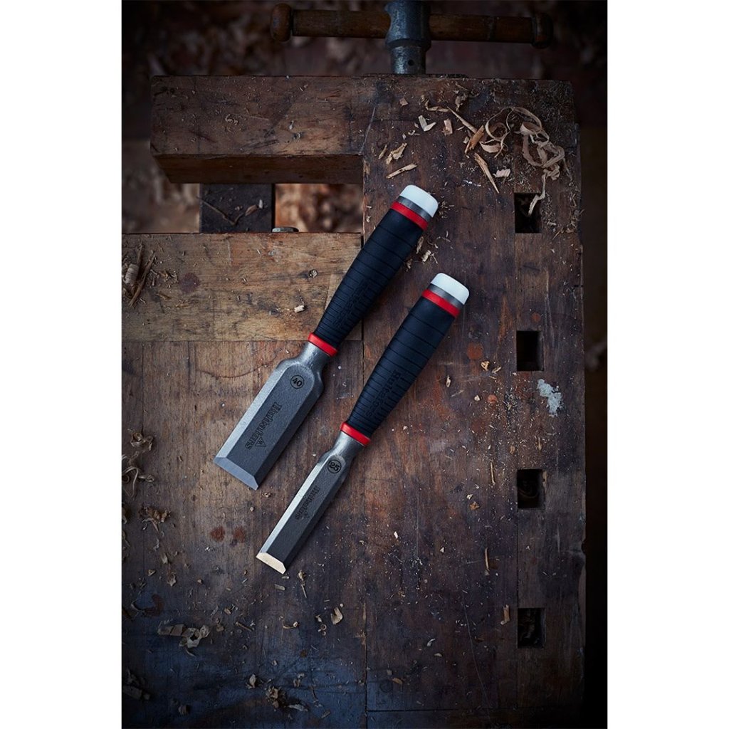 Díky robustní konstrukci a dokonale rovnému spodku můžete provádět přesné, rovnoběžné řezy, zatímco břit s úhlem 25° nabízí ideální kombinaci dlouhotrvající ostrosti a odolnosti. Nárazuvzdorný nylonový úderník je vyměnitelný, takže i při intenzivním používání můžete pracovat efektivně dál. Pohodlná rukojeť ze Santoprenu a praktické pouzdro, které jednoduše připevníte na opasek nebo knoflík, zajišťují, že budete mít dláto vždy po ruce.
