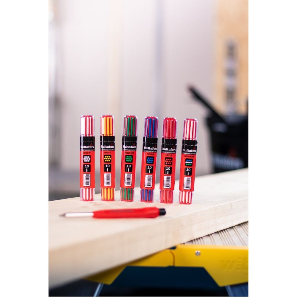 Uvnitř pevného a odolného pouzdra se nachází deset vysoce kvalitních grafitových tuh, vhodných pro značení na širokou škálu povrchů. Inteligentní design zásobníku chrání křehké tuhy před zlomením během přepravy a zároveň umožňuje snadné vysunutí vždy pouze jedné náplně, čímž se zabraňuje jejich ztrátě či plýtvání. Pro maximální pohodlí je zásobník vybaven praktickým klipem, díky kterému ho můžete bezpečně připevnit na kapsu nebo opasek. Je plně kompatibilní se suchým značkovačem Hultafors, což z něj činí ideální doplněk pro každého profesionála i kutila, který si potrpí na efektivitu a preciznost.