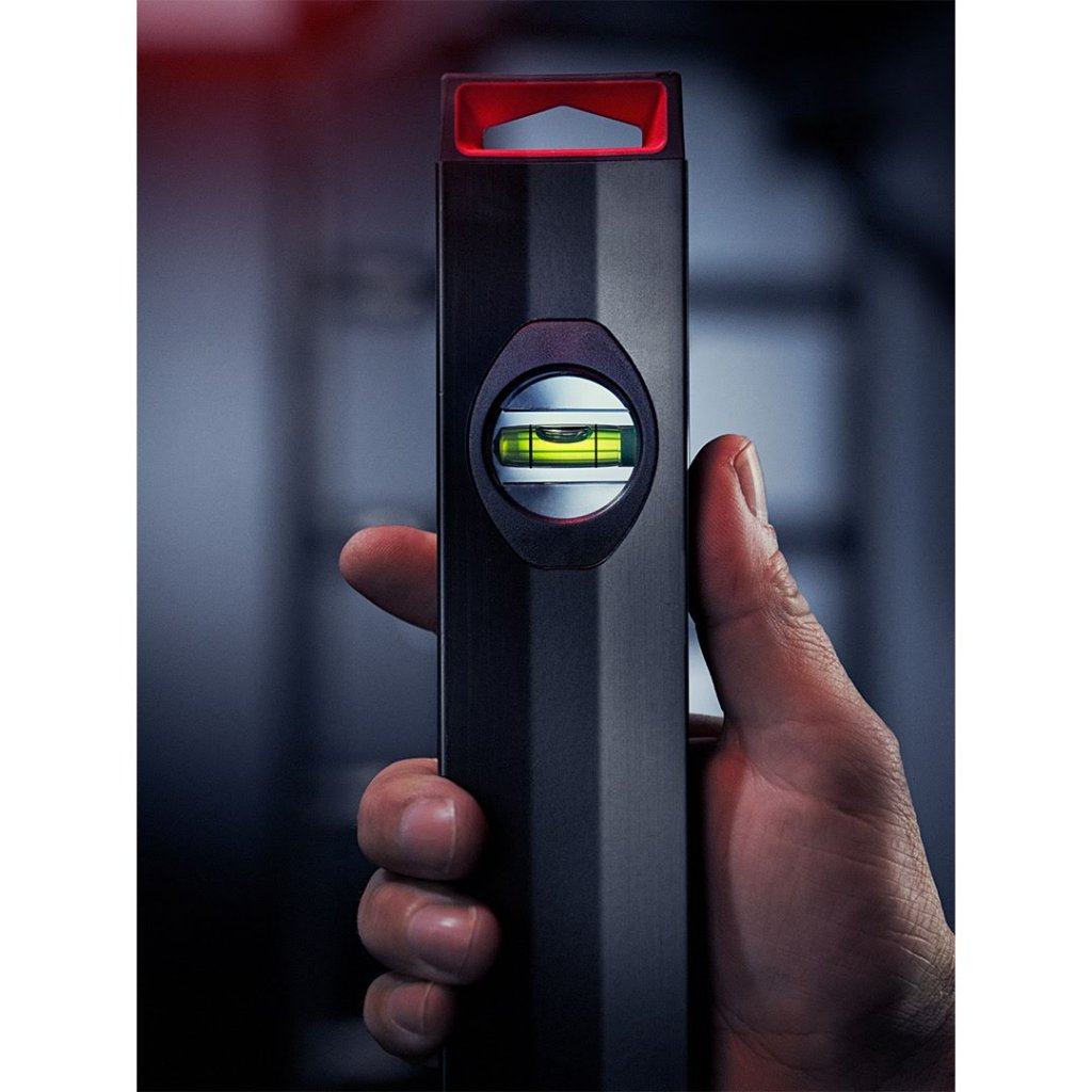 Tělo vodováhy je vyrobeno z pevného hliníkového profilu, který zajišťuje vysokou odolnost při zachování nízké hmotnosti pro snadnou manipulaci. Srdcem nástroje jsou vysoce průhledné a nárazuvzdorné blokové libely. Horizontální libela je navíc vybavena čočkou se zvětšením o 30 % a luminiscenční odrazkou, což dramaticky zlepšuje čitelnost bubliny i za zhoršených světelných podmínek. Speciální antistatická kapalina v libele zaručuje plynulý pohyb bubliny, který není ovlivněn teplotními změnami, a zajišťuje tak vždy přesné měření.