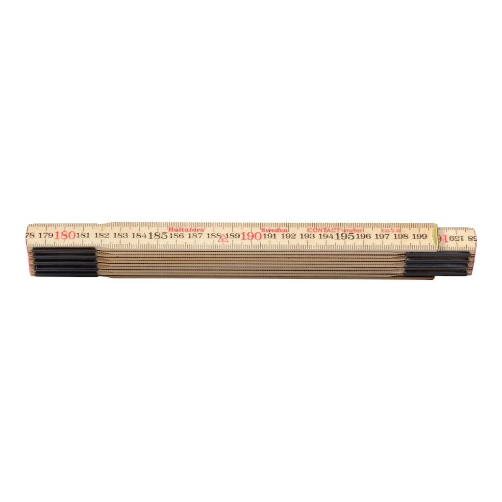 Tělo metru je vyrobeno z pečlivě vybraného březového dřeva, které zajišťuje vysokou odolnost a pružnost. Mimořádnou flexibilitu a plynulý chod zaručují klouby ze švédské oceli, které jsou tepelně zpracovány, povrchově chráněny a na třech bodech ošetřeny olejem pro maximální životnost. Přehledná metrická stupnice v černé barvě je doplněna výraznými červenými číslicemi pro decimetry, což usnadňuje rychlé a bezchybné odečítání hodnot. Každý kus navíc prochází dvojitou kontrolou během výroby, což je zárukou nejvyšší kvality.