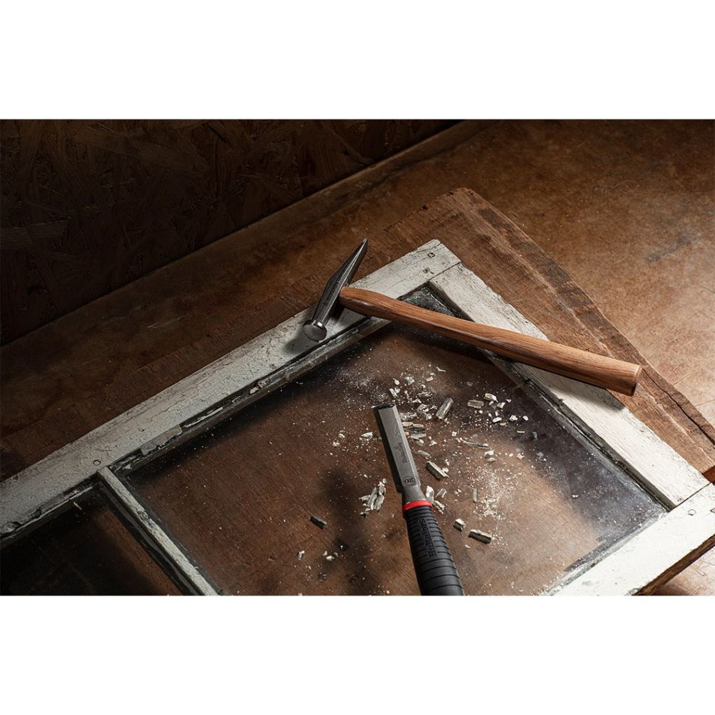 Toto kladivo má ručně kovanou železnou hlavu s kalenou, kulatou úderovou plochou a ostrým okrajem, která zajišťuje spolehlivý úder i kontrolu při jemné práci se sklem. Pískovaný a lakovaný povrch chrání nástroj před opotřebením a korozí, zatímco ergonomické topůrko z pravého hikoru zaručuje pohodlný úchop a účinné tlumení nárazů. Dřevěné topůrko lze navíc jednoduše vyměnit, což prodlužuje životnost a hodnotu nástroje.