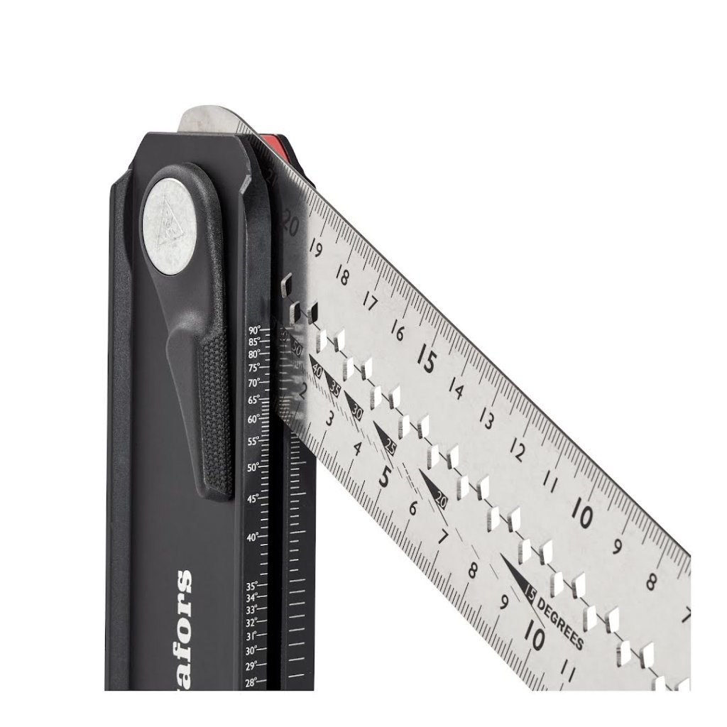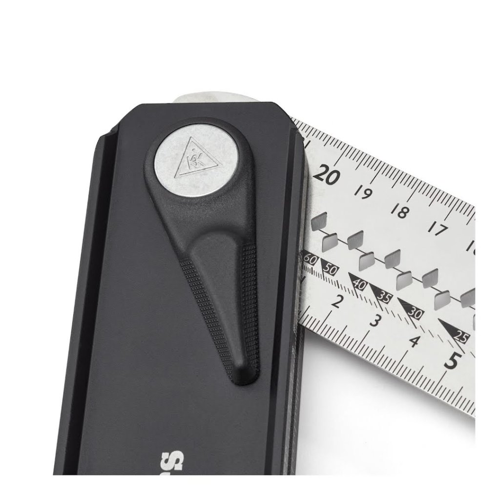Nástroj je konstruován pro náročné profesionální použití. Tělo z plně eloxovaného hliníku doplňuje 25cm čepel z 1 mm silné nerezové oceli. Odolný kloub umožňuje otáčení čepele s pevnými zarážkami pro standardní úhly 45°, 90° a 135°. Pomocí aretační páčky lze snadno a spolehlivě nastavit a zafixovat jakýkoli úhel v rozsahu až 270°. Přesnost měření a značení zajišťuje laserem gravírovaná milimetrová stupnice a praktické značicí zářezy.