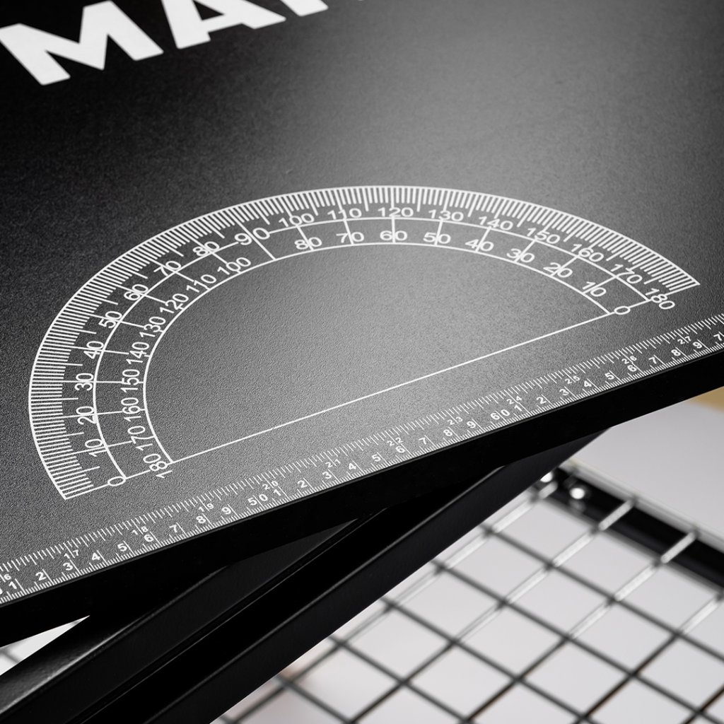 Možnost vyměnit pracovní desku, ať už použitou za novou, tak i za speciální děrovanou, dle vaší potřeby. Obě desky z MDF a jsou opatřeny odolným černým laminem a natištěnou stupnicí v metrické soustavě.